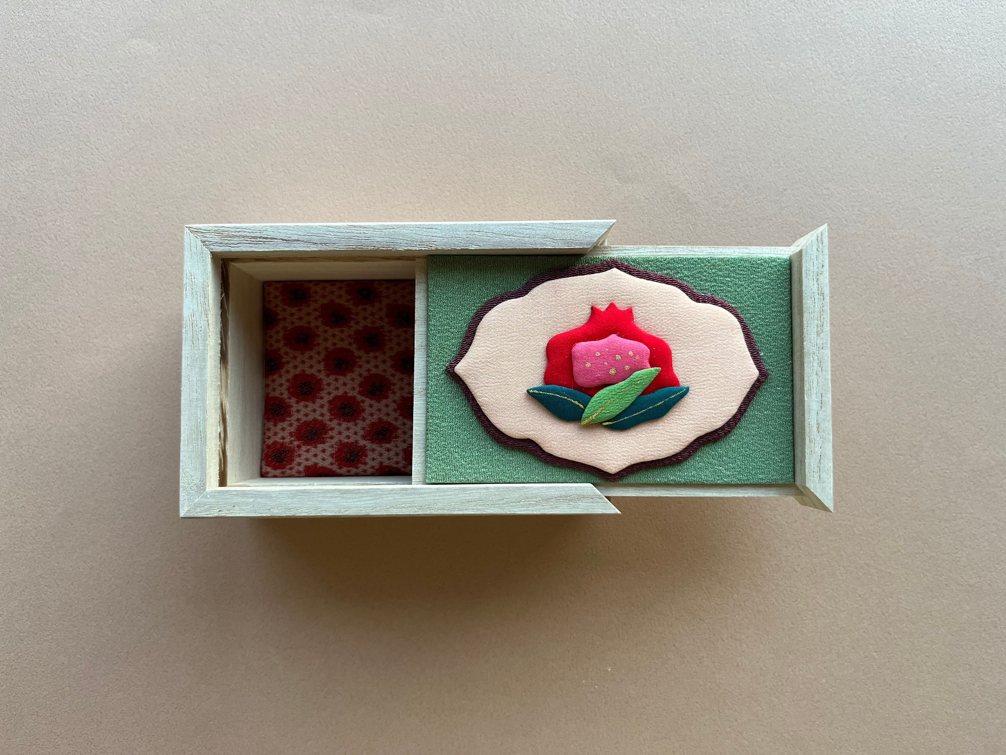 日本の伝統的な技法である押絵で装飾した桐箱です。